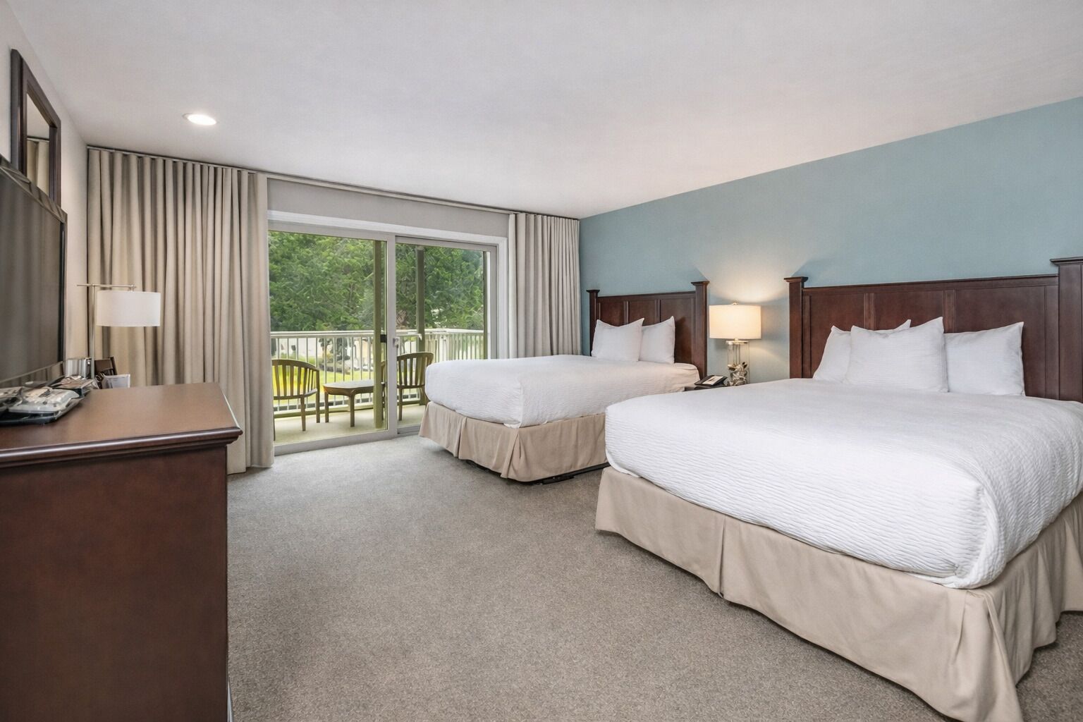 The HARBORSIDE HEARTH SUITE is located in the Harborside Buildings on the waterfront overlooking Cascade Bay. This suite features a kitchenette, dining room, and living room. A separate bedroom features one king bed, private bathroom, and a balcony with beautiful views of the water and the historic Moran Mansion. This suite accommodates two. Book the adjoining Harborside Queen Room #2352 and this turns into a large two bedroom suite sleeping up to six.