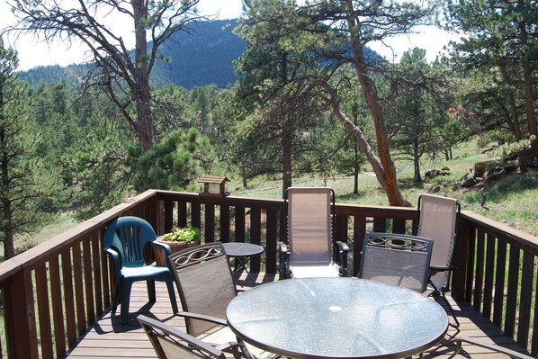 This home is a short walk to downtown and Lake Estes but far enough away to enjoy some peace and quiet. The private deck features mountain and lake views, as well as a gas grill and tranquil forest scenery.