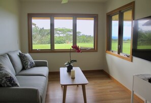 This recently built comfortable cottage is located on the north shore of the island of Maui, tucked away in the quiet countryside of Haiku but relatively close to major attractions! Enjoy a relaxing vacation in a rich tropical setting with spectacular ocean views!