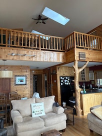 *Vaulted ceiling with gorgeous wood beams and huge sleeping loft w/queen bed and two (2) twin beds (sleeps 4)(please note that loft is accessible by ladder only)