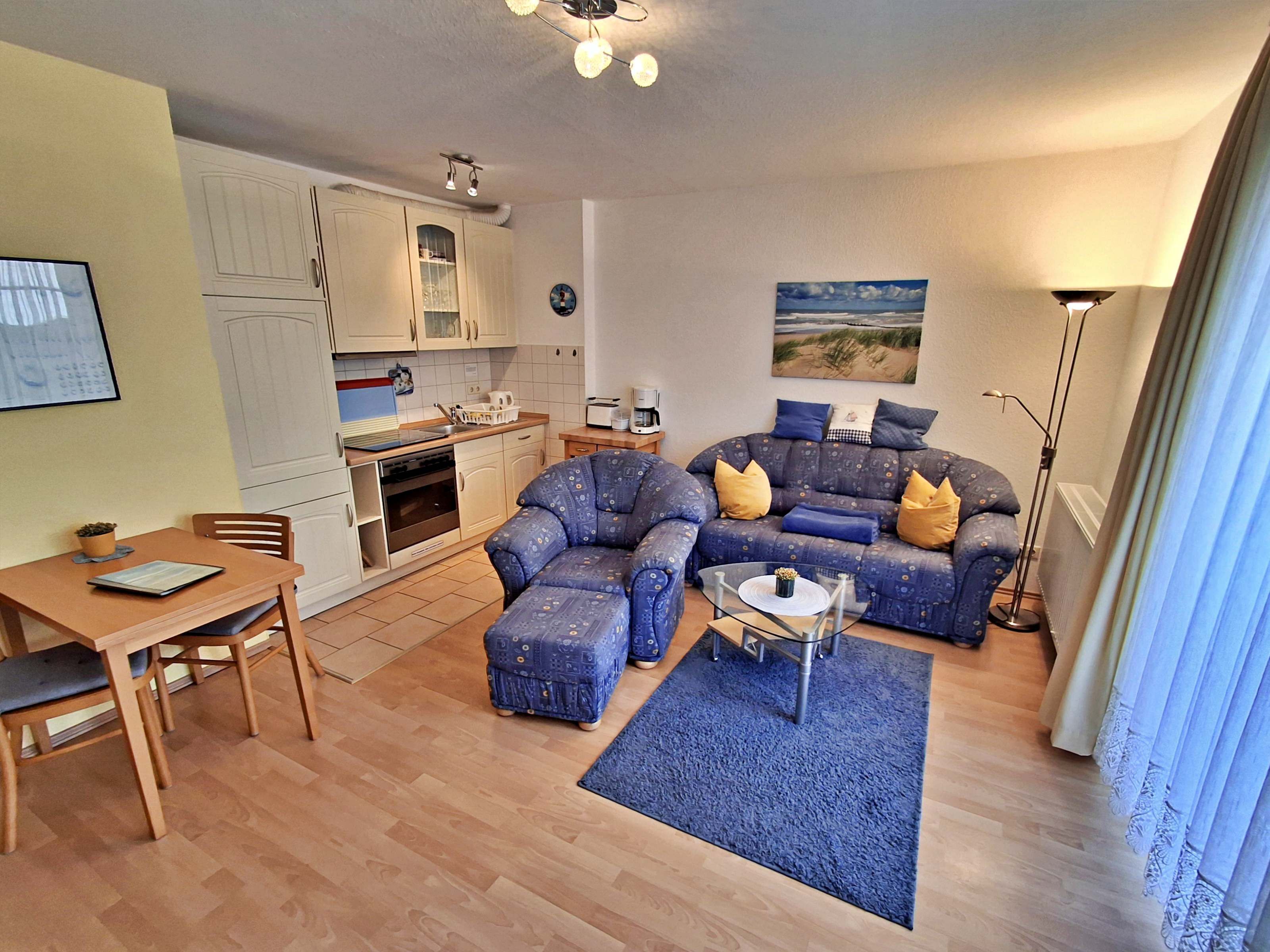 Villa Ostseewarte Whg. 9, BALCÓN, ELEVADOR: El acogedor apartamento de 1 habitación N ° 9 se encuentra en el 1er. Piso de espera Villa Báltico. Cuenta con una amplia sala de estar y dormitorio con una cama doble, una acogedora sala de estar y un comedor. La cocina integrada es totalmente ausgestattetet con cafetera, tetera, tostadora y microondas. El baño tiene una ducha y WC. El apartamento tiene además un balcón amueblado. Una plaza de aparcamiento está disponible en la propiedad de forma gratuita y las bicicletas se pueden acomodar en la propiedad en una sala de almacenamiento independiente. Todos los apartamentos del Villa de espera Báltico tienen acceso a Internet inalámbrico de alta velocidad protegido por contraseña (dispositivo de ligado, 1,50 € por día por dispositivo). Un elevador fue reforzado. Una lavadora se puede utilizar (moneda) por una tarifa.