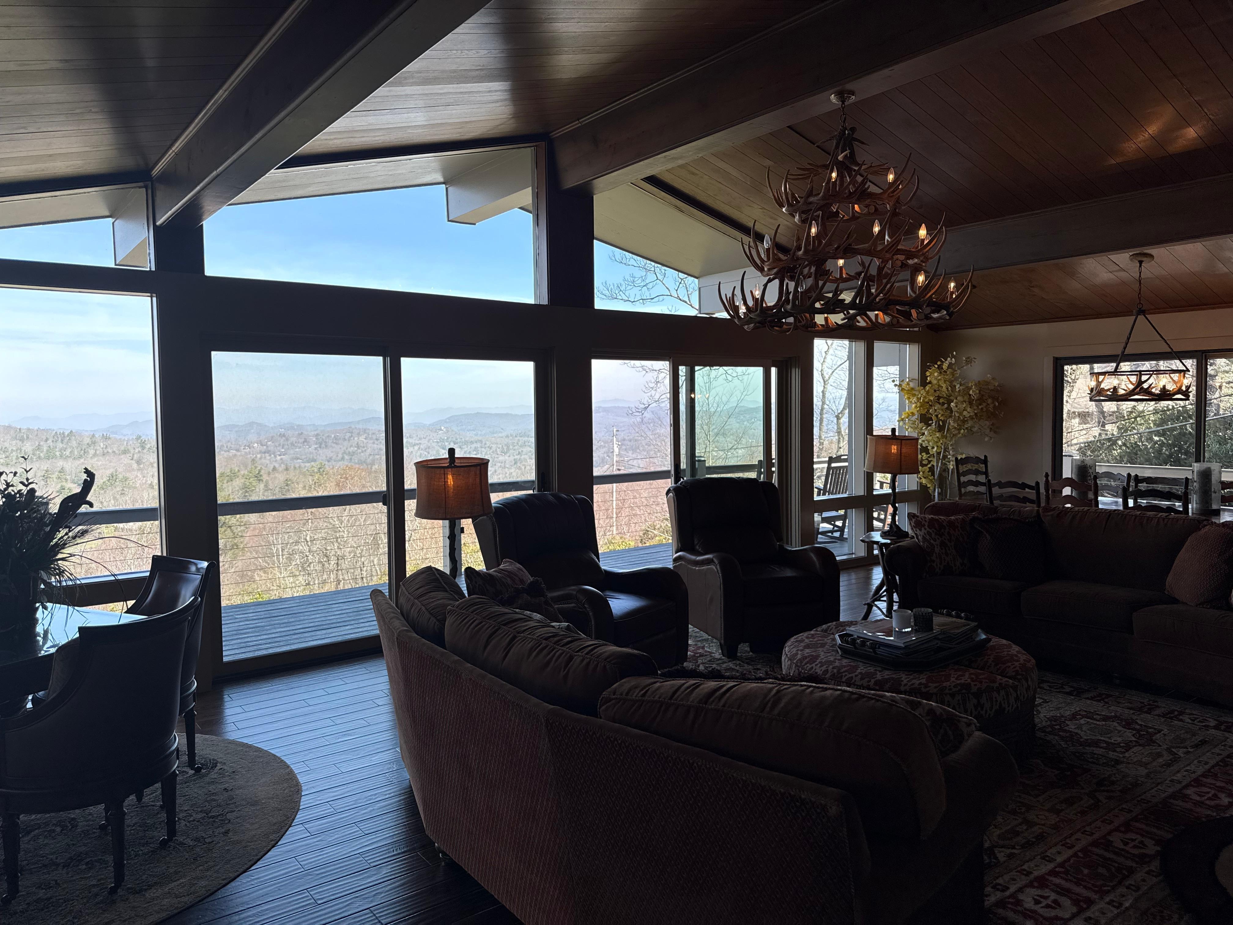 Famoso Whiteside Mountain en Carolina del Norte. RENOVACIÓN EXTENSIVA AHORA COMPLETA! Impresionantes vistas panorámicas a las montañas de largo alcance desde esta asombrosa casa de estilo lodge de lujo que ha sido completamente renovada y estará disponible para los huéspedes el 6 de agosto. Ubicado entre Highlands y Cashiers, NC. Esta espaciosa casa cuenta con cuatro habitaciones cada una con un