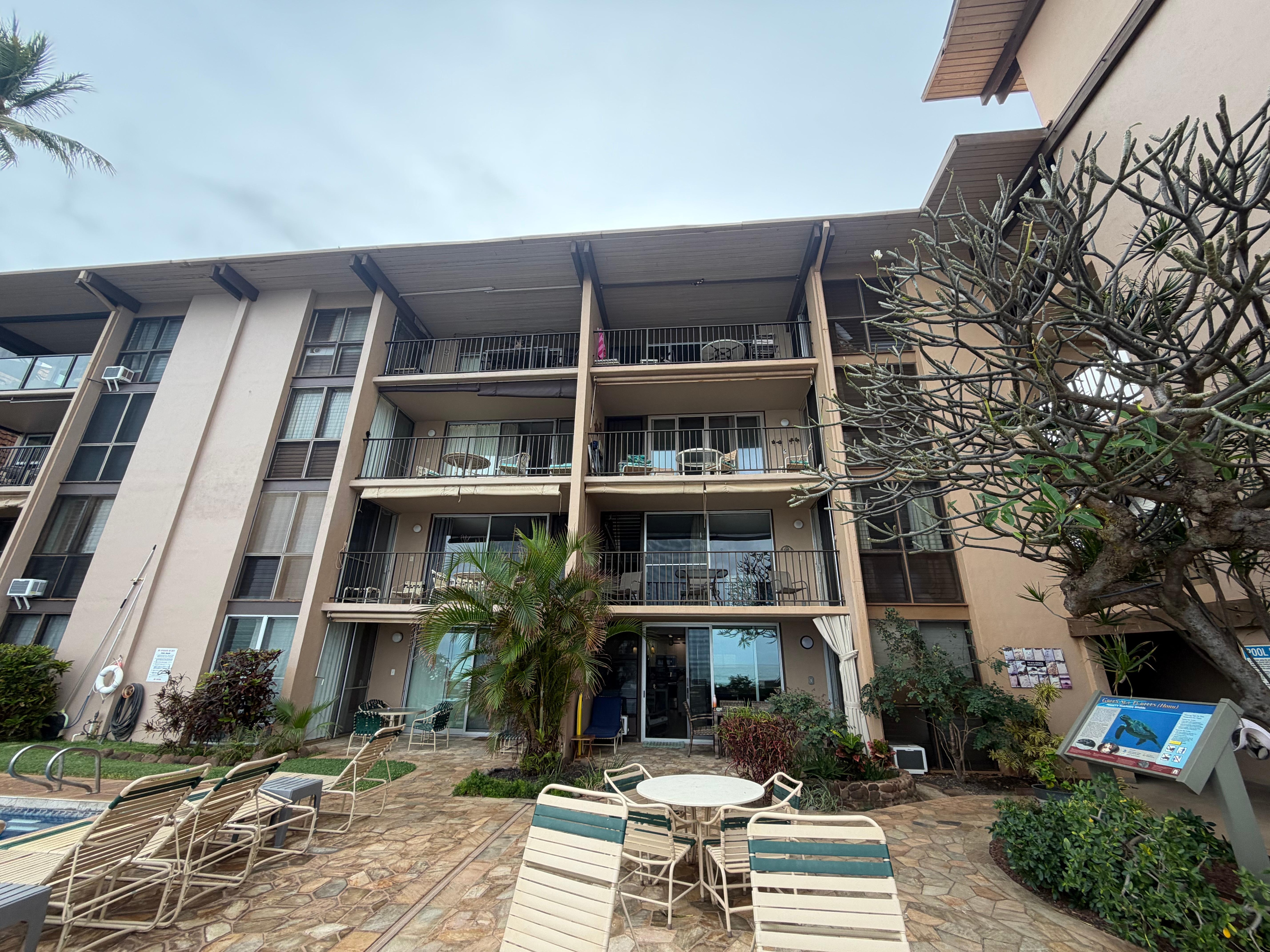 This was a wonderful place to stay. We saw whales at a distance and lots of sea turtles. Complex clean and well maintained. Condo clean, well equipped and beautiful decor. Comfortable beds-can sleep to sounds of ocean waves. Went swimming and snorkeling right in front of condo. Only negative is very strong winds near elevator and front door but nothing can be done about that. Beach chairs, cooler and umbrella available for use. Owner very responsive. Thoroughly enjoyed our stay.