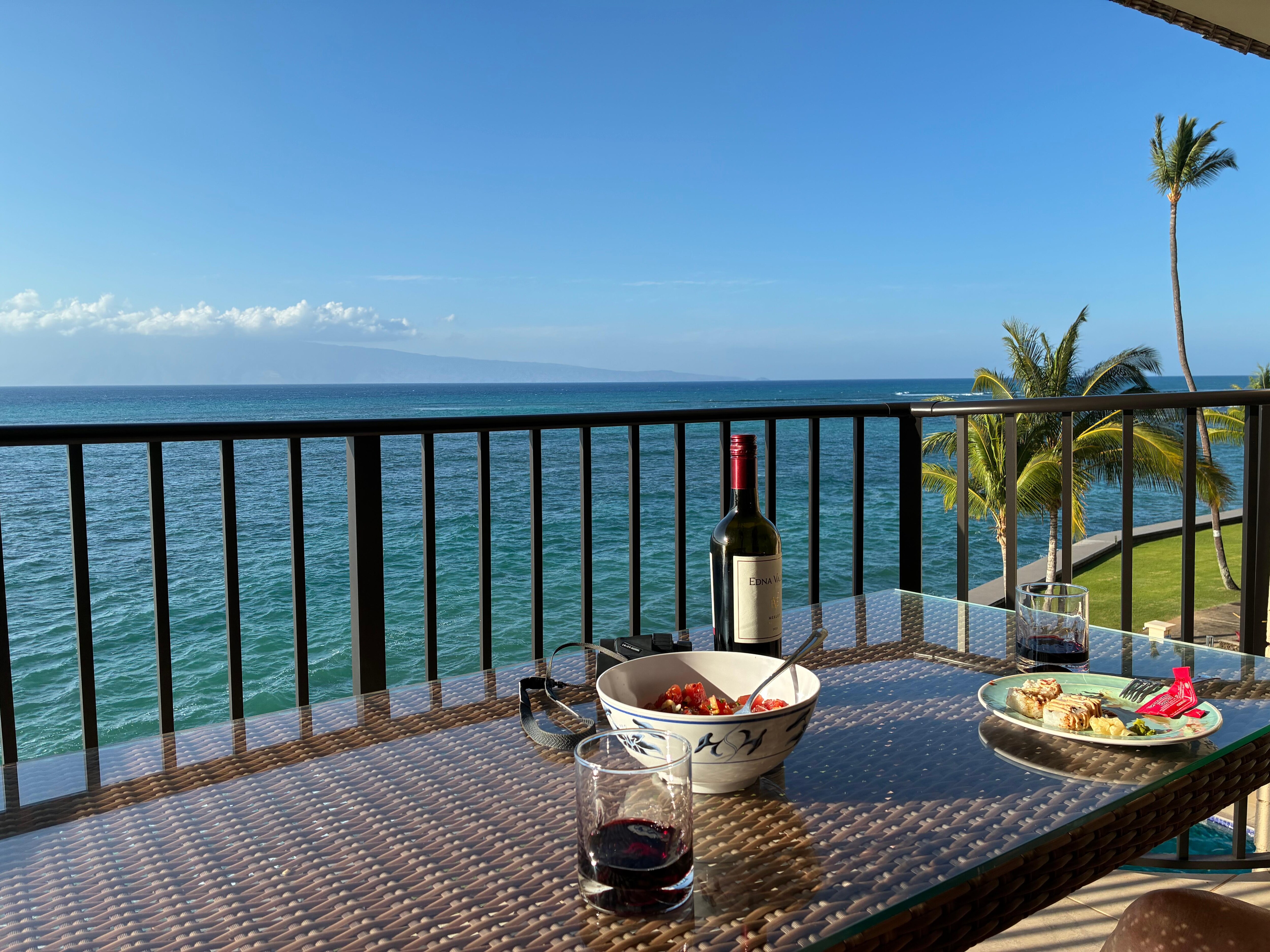 We loved staying here. We took our surfboards out every day and paddled only a few metres away to see of the finest surfing on the island. Yay! Dolphins and whales and a view of Molokai sweetened the deal. Great!