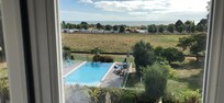 Excellent stay at this chateau. Alan was lovely. Rung just before we arrived. We had a lovely swim in the pool, which is heated and looking at the sea. Room was very pleasant. Very safe parking for the car. Lovely quiet area. Easy walk to the local village. Recommended excellent place to eat that was great fun. We had left the lights on, on our car by accident. Alan was great, noticed this and rung twice to make sure we knew and so we didn't have a dead battery in the morning. Lovely breakfast in fantastic dining room. Easy check out. A definite if you like to stay at a chateau with a pool.