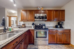 Photo gallery for Comfy condo with spacious deck, fast WiFi, fireplace, indoor & outdoor pools