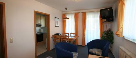 Wir haben uns in der Ferienwohnung nicht wohl gefühlt. Die richtige Bewertung aus unserer Sicht liegt zwischen schlecht und okay!Hierzu haben folgende Punkte beigetragen:Mit Betreten der Wohnung waren wir bereits enttäuscht, da die Ausstattung des Wohnraums sowie der Terrasse nicht mit den Bildern im Internet übereinstimmte.Mit den aktuellen Bildern hätten wir wahrscheinlich keine Anfrage gestellt und eine Buchung vorgenommen.Wir haben hierüber bereits die Rügener Zimmervermittlung am Anreisetag informiert.Aber auch die weiteren folgenden Punkte haben dazu beigetragen, dass wir uns nicht wohl gefühlt haben:Bei den Fernsehprogrammen konnte "Das Erste" sowie die Dritten Programme nicht empfangen werden. Das liegt wohl am Satellitenempfang. Hier müsste eine HD-Karte angeschafft werden.Jetzt wird der ein oder andere sagen, dass im Urlaub das Fernsehen nicht wichtig ist. Aber wenn man sich abends in der Wohnung aufhält, sollten schon die wichtigsten Programme zu empfangen sein.Ein Rollo dunkelt ein Zimmer sowieso nicht gut ab. Aber wenn dieses dann noch ca 5 cm von der Wand absteht, ist es ab 4 Uhr schon sehr hell im Schlafzimmer gewesen.Das Bad ist recht klein, aber gut genutzt. Allerdings ist es sehr unangenehm, wenn man beim Öffnen direkt auf die Terrasse der Nachbarwohnung blickt. Jeder kann sich jetzt selbst Gedanken machen, wie man sich fühlt, wenn man sein Geschäft verrichtet. Letzter Punkt: unsere erste Ferienwohnung ohne Salz- und Pfefferstreuer!!