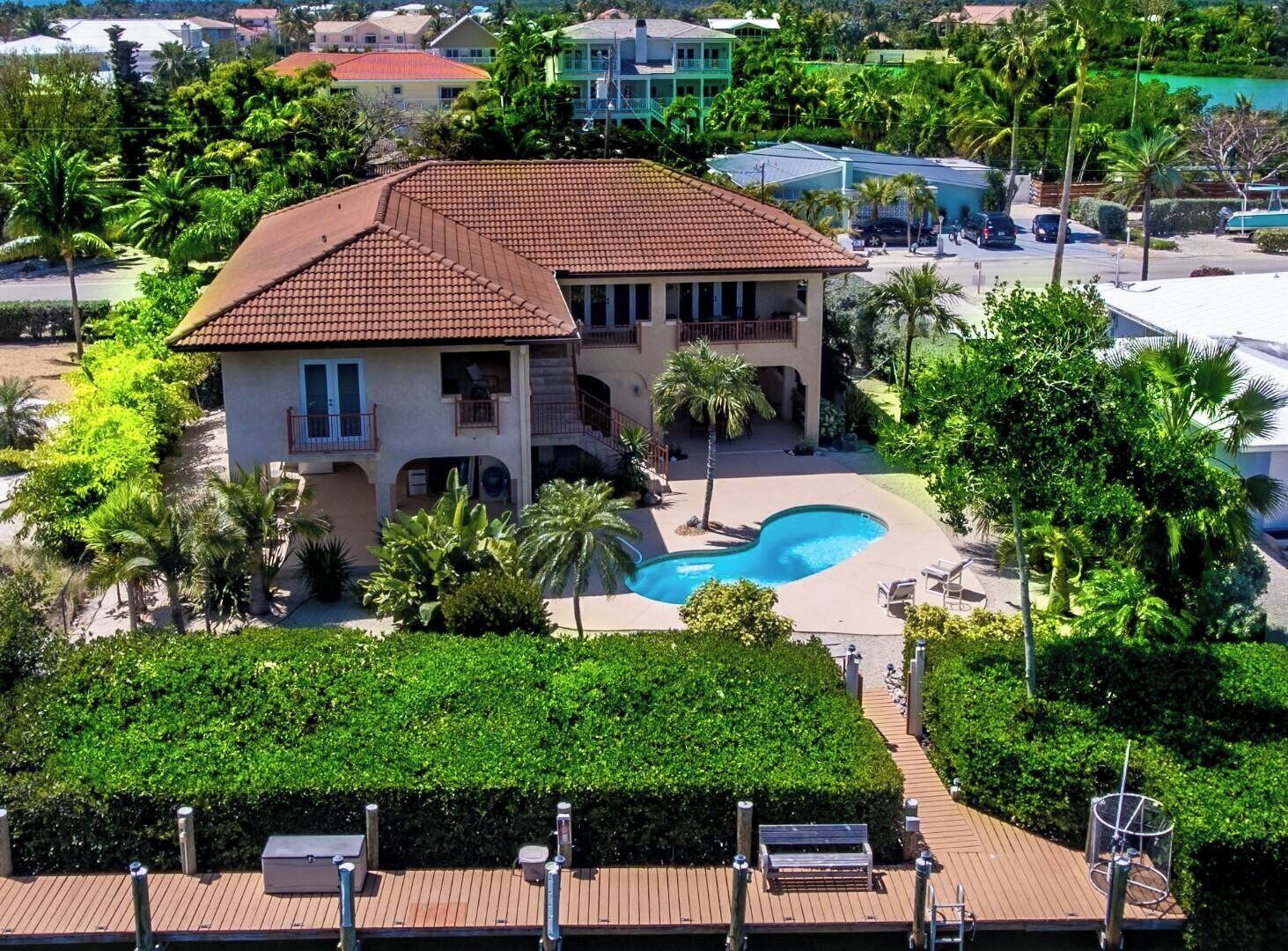 Elegant waterfront home with private pools, hot tub, & dock - walk to beach
