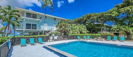 Coastal Charm: 2BR Condo, Patio, Pool Views, Beach