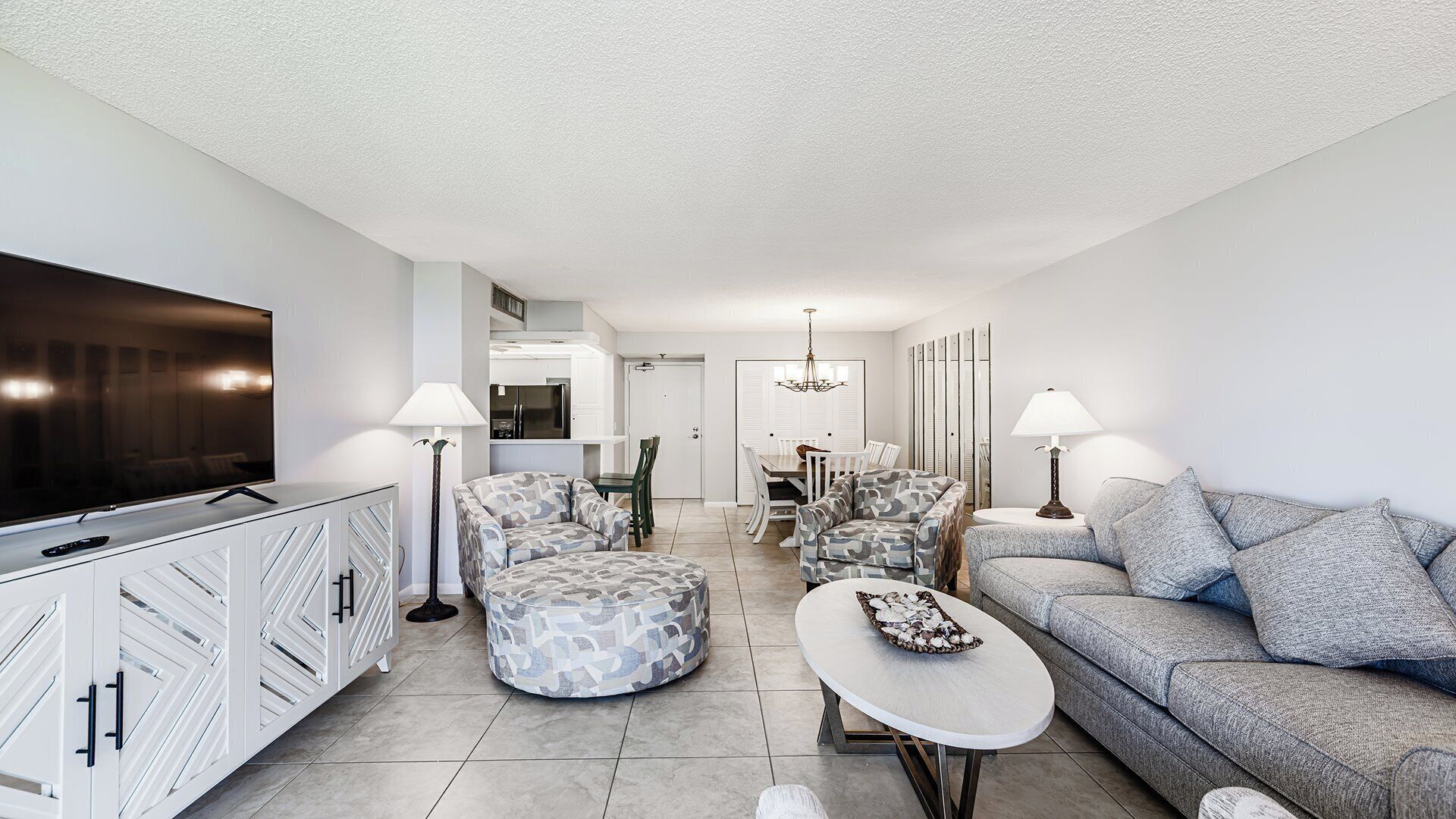 Location was the best part of this condo. The condo was clean, but could use a refresh. The lamps do not match and are not a great fit with the decor. The sliding screen door to the balcony sticks and is hard to close. The carpet in the master bedroom looks like it could use a good cleaning.
