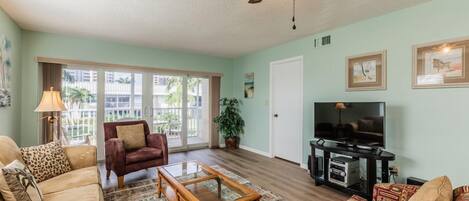 Waterfront views at this updated 1 Bedroom Condo in Historic Old Marco
