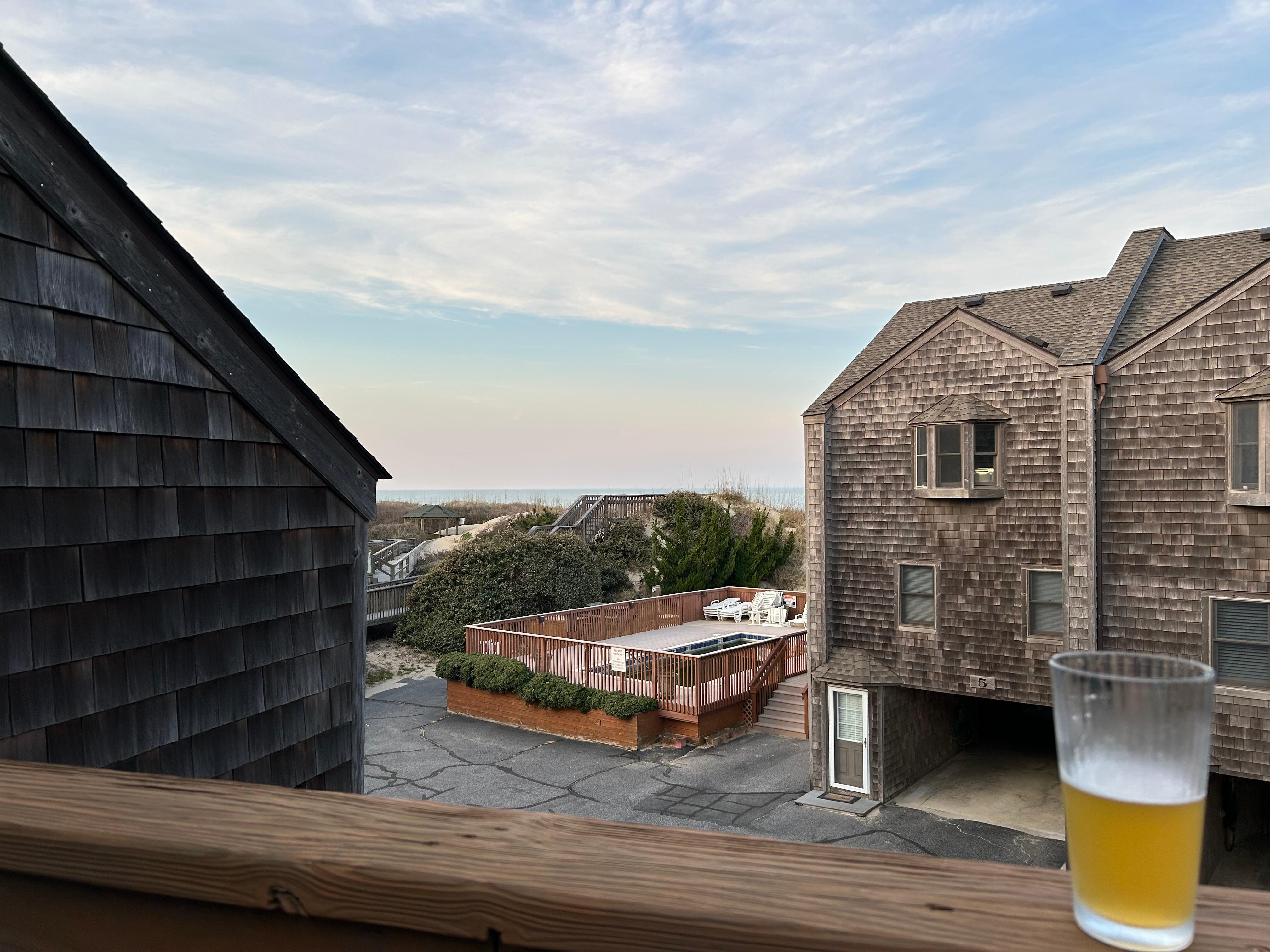 Great location! These townhouse buildings were artfully placed such that they all have an ocean view. This townhouse is in the back row, but it has a nice ocean view from the family room and upstairs deck. There’s even a peekaboo view from the bay window in the kitchen. The property is very centrally located - lots of restaurants nearby and minutes away from the Wright Brothers Memorial and sights on Roanoke Island. We were able to explore all the way up to Corolla and all the way down to Hatteras using the property as our home base. The master bath was magnificent, and it was great having a half bath in the living area. Easy beach access with the property’s own boardwalk. Would definitely stay here again!