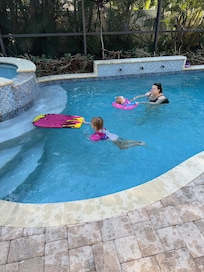 Two Master Bedrooms! Less than 1 Mile to the beach with heated pool and spa