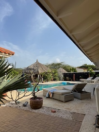 This home is a true vacation destination! We stayed for 2 wks. Our family joined us for the 1st week and then we had 2 couples join us for the 2nd week. Checkin was perfect. Communication w/ the host was never a problem. Sha was always welcoming and gracious. The villa is as described but honestly it is prettier in person! We enjoyed the back yard/ pool/ patio are every afternoon for about 3 hrs. It There are 4 different seating areas for a group of 6!There are 4 chaise lounge chairs. Pool floats to use, beach things & towels for us to use. The owner honestly has everything covered! There is nothing possibly left to ‘want’ in this home.Everything is wonderful! Do not question whether to stay here- just book your dates!! We WILL be coming back to Villa Prikichi and the neighborhood is peaceful too!! As a bonus, there is a local food trailer just outside the neighborhood that sells coffee: breakfast & lunch!