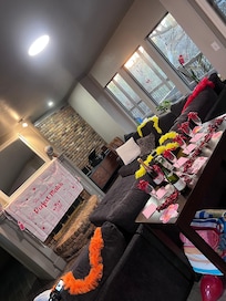 We stayed here for my sister’s bachelorette party, and it was perfect for our group of six—plenty of space for everyone! The inside was clean, well-maintained, and very comfortable. The outdoor furniture needed a quick wipe-down before use, but that’s to be expected.One of the best parts was sitting on the back deck in the morning with a cup of coffee, listening to the wildlife—it truly felt like we were tucked away in the wilderness. It was so peaceful and beautiful.We enjoyed the hot tub, although the pool wasn’t open due to the season. The TV was easy to use with AirPlay, so we could stream whatever we wanted, which was a nice touch. They also provided coffee and a few extra essentials, which we appreciated.Overall, it’s such a cute, spacious house—definitely could accommodate more people, but it was absolutely perfect for our girls’ getaway!