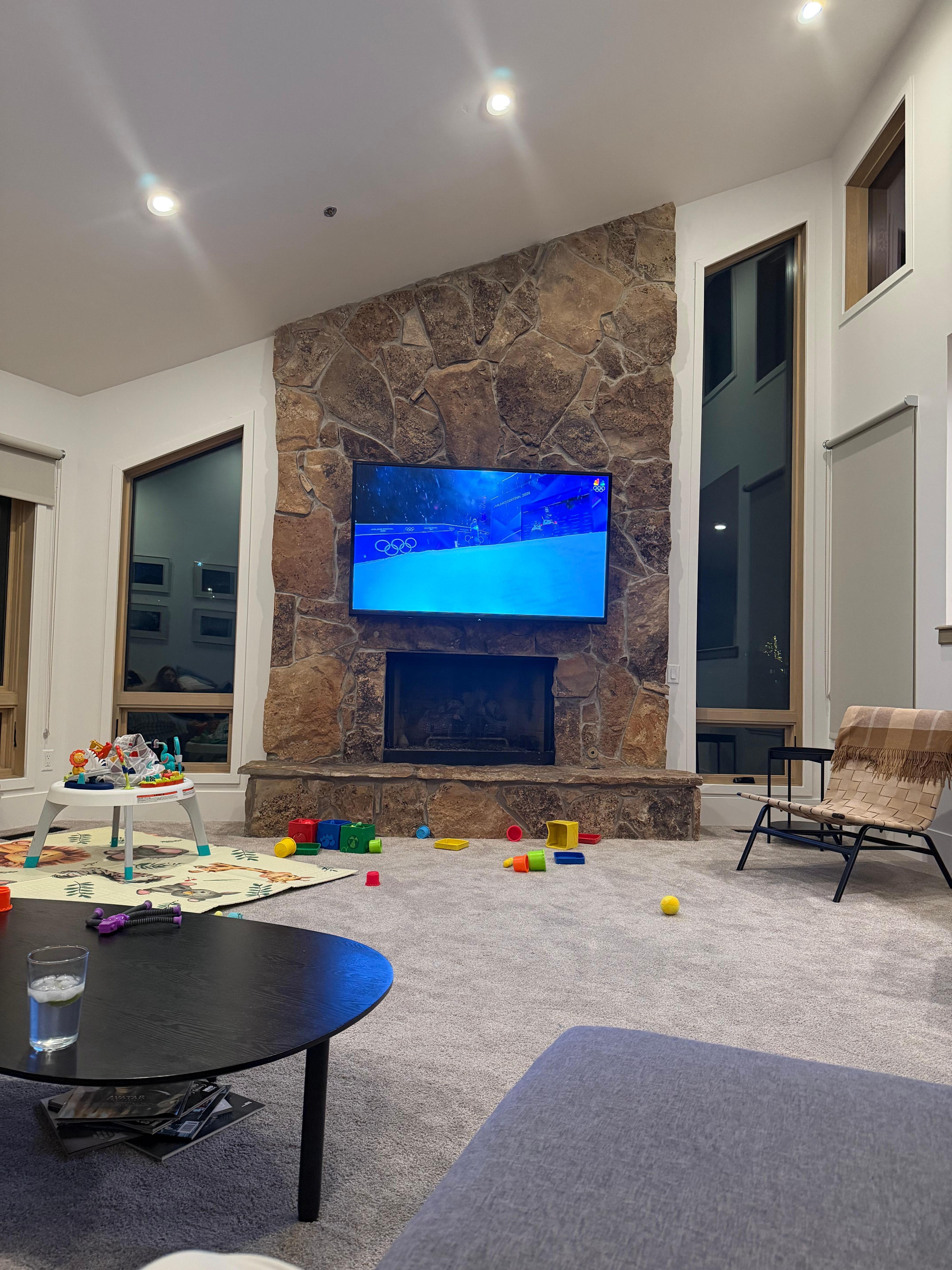 Sala: la vista desde esta habitación es impresionante, con vistas panorámicas de la zona montañosa de Deer Valley y el lago ubicado detrás del condominio. Se configura con un acogedor y amplio sofá seccional y una tumbona combinada con un manto de piedra del piso al techo y una chimenea de gas. Comedor separado con asientos para cuatro. HDTV de 70 ”con VCR, DVD y sistema estéreo.