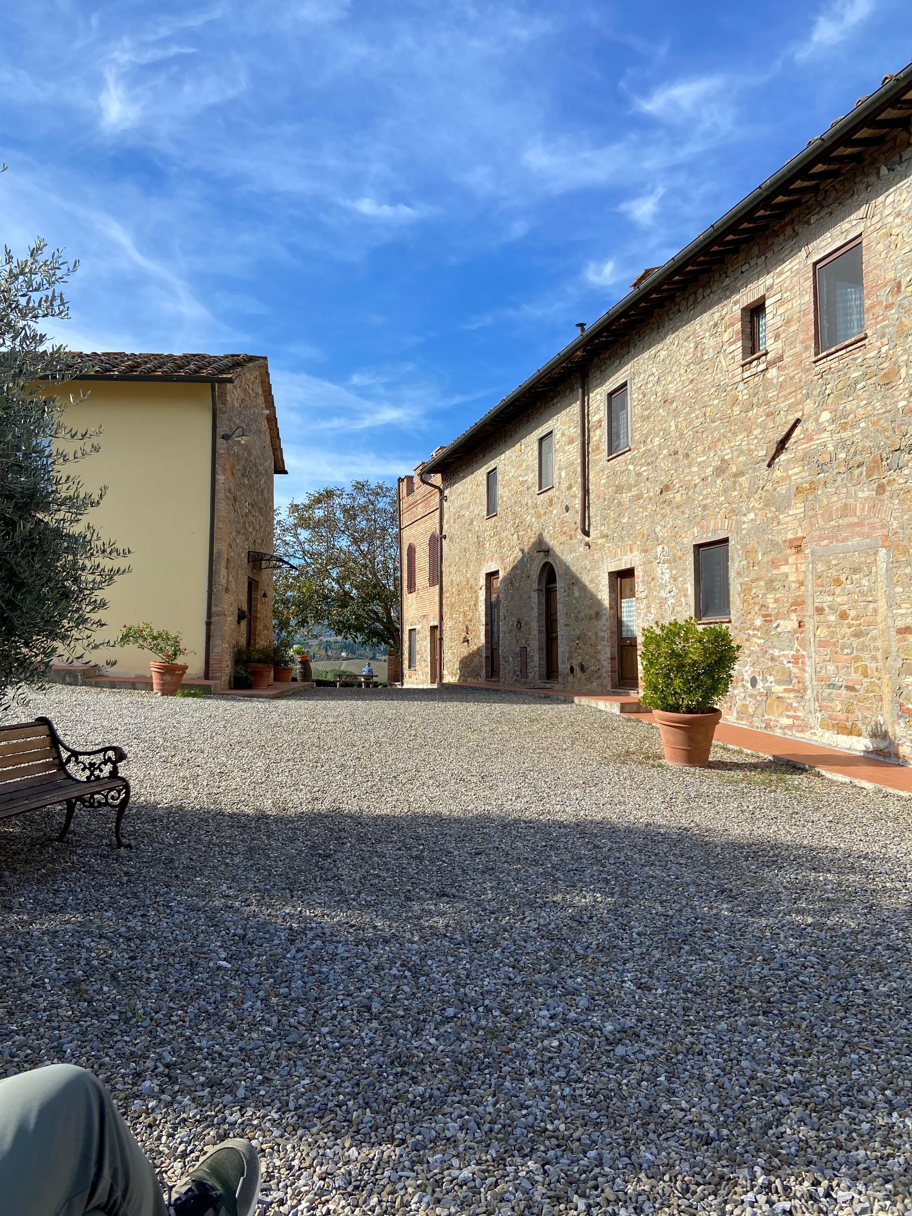 La propiedad es parte de un lote de terreno de 23 hectáreas, dividida entre el viñedo produce uvas de prestigio como Vernaccia de San Gimignano y Chianti Classico, olivares (tenemos alrededor de 1000 los Olivos), campos de cultivo (trigo, girasoles, violación, etc.) y un bosque fantástico en el que fluye una corriente, un lugar donde los adultos y los niños les encanta hacer excursiones cortas. Para el bosque es una zona con mesa de picnic y sillas rústicas. La ubicación también es especial porque a pesar de estar lejos del tráfico, la contaminación y el ruido, estamos muy cerca del centro de San Gimignano, a pocos kilómetros a vuelo de pájaro, y a3,6Km por carretera, y por lo tanto disfrutar de las ventajas de campo y la cercanía a la ciudad. Nuestros vecinos corren una caballeriza con muchos caballos, y se organizan excursiones por hora en nuestro campo y en nuestros bosques. A 30 metros de nosotros, los vecinos corren un restaurante especial, muy "social", famoso por la buena comida y las mesas están todos unidos para permitir que todos los clientes para hacer amigos entre sí.