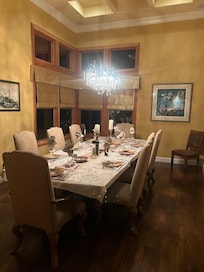 The kitchen and breakfast nook complete the great room. This kitchen is truly gourmet and will accommodate any hobby chef or professional. Granite counters throughout, large working island, multiple dishes, cookware, cutlery, baking and serving dishes, and utensils are provided. Whether you are preparing a quick snack or feast, most anything you need will be found here, all the while connecting with your friends and family, and able to keep an eye on activities in the backyard area.