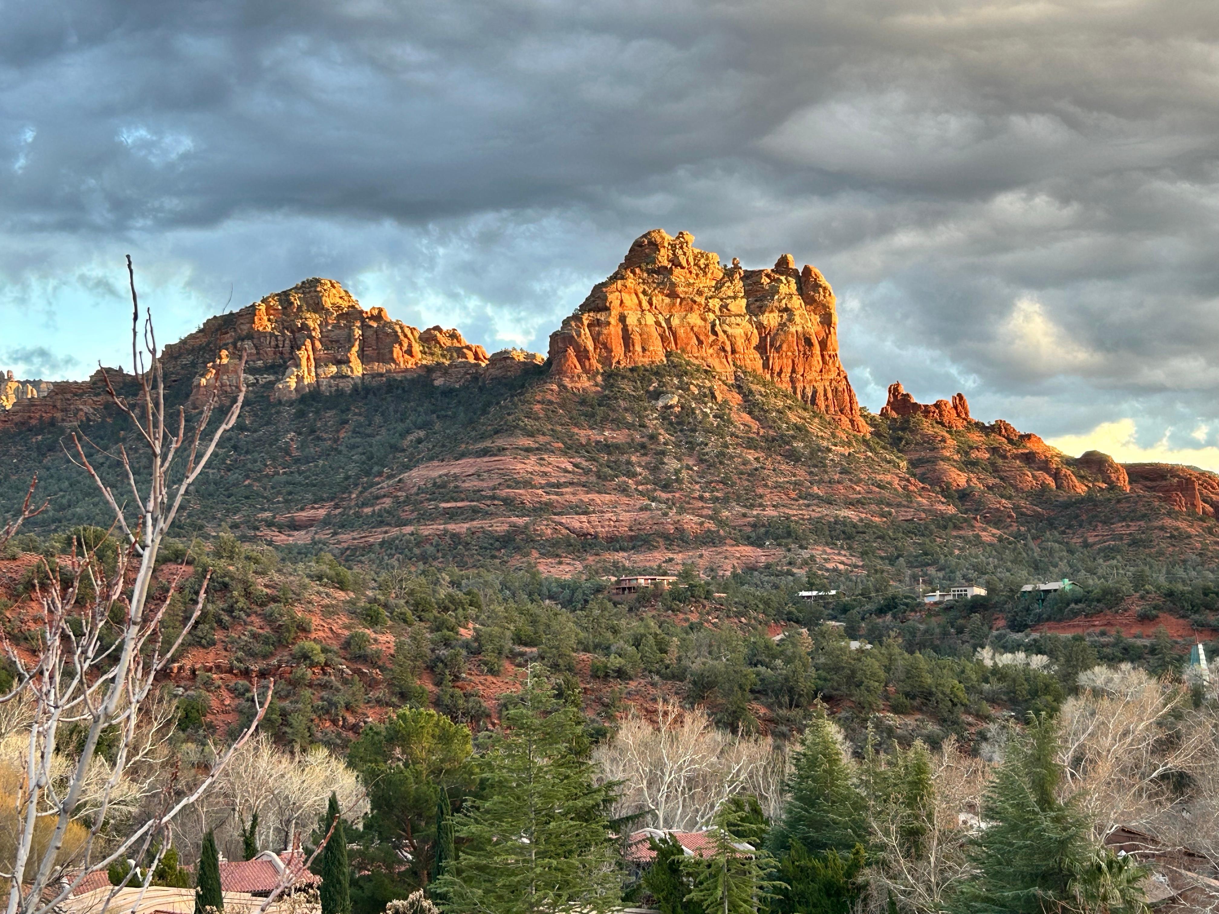 Preciosa joya contemporánea con fantásticas vistas y servicios de spa. Vistas panorámicas de Red Rock están en la exhibición de la mayor parte de la casa, incluyendo los dos master suites. La principal zona de estar es un concepto abierto, con impresionantes vistas de roca roja de la zona de comedor, cocina y sala. El hogar que alivia con descanso y confort. Los suelos de piedra con calefacción calentar los pies en el invierno y te mantienen fresco en el verano. Agua caliente sin fin le permite disfrutar de duchas pausado relajarse después de un día de senderismo y el surtido de la iluminación puede crear el ambiente para una experiencia de cine en la noche con el televisor de 55 "pantalla plana. Dos hidromasajes interiores le dan la opción de un baño de burbujas de champán o un baño de hidromasaje, hay un 6 persona jacuzzi en el patio trasero cubierto con vistas a las montañas. Una perfecta combinación de madera, acero piedra y cristal hacen de esta casa una alegría para la vista y hará que sus vacaciones Sedona unas vacaciones para recordar.