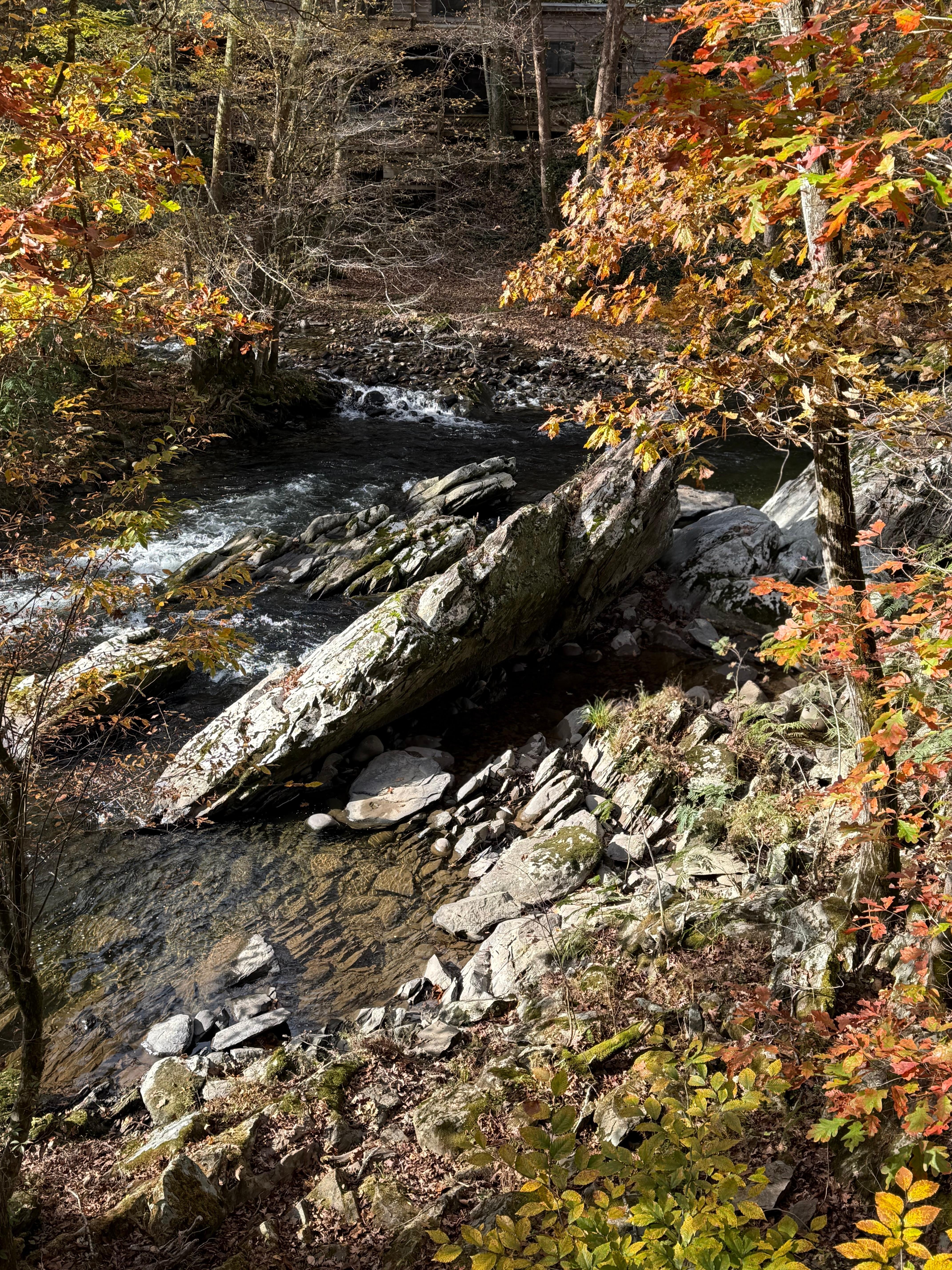 Pigeon River Hideaway se encuentra en el río Little Pigeon entre Gatlinburg y Pigeon Forge. Magníficas vistas del río desde la cubierta, proyectado en porche con columpio y dos dormitorios en planta alta. Los mejores rápidos en todo el río están directamente en frente del chalet rústico. En el nivel superior es de dos dormitorios y un baño, que incluye un jacuzzi para 2 personas. El nivel principal incluye una gran sala con HD TV satélite, DVD / VCR, sofá, comedor y chimenea. También en la planta principal hay una cocina totalmente equipada y baño adicional. En la planta baja hay otro dormitorio con su propia terraza privada al río y una ducha adicional.
