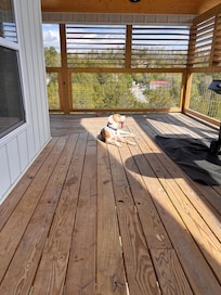 Very clean, new cabin, with stunning views! My wife and I spent most our time in the cabin on the patio, a good cup of Whiskey Morning Coffee and that sunrise! Let's just say i was so in awe I forgot to take a picture. My sons and I really enjoyed hanging out playing pool! Definitely recommend!