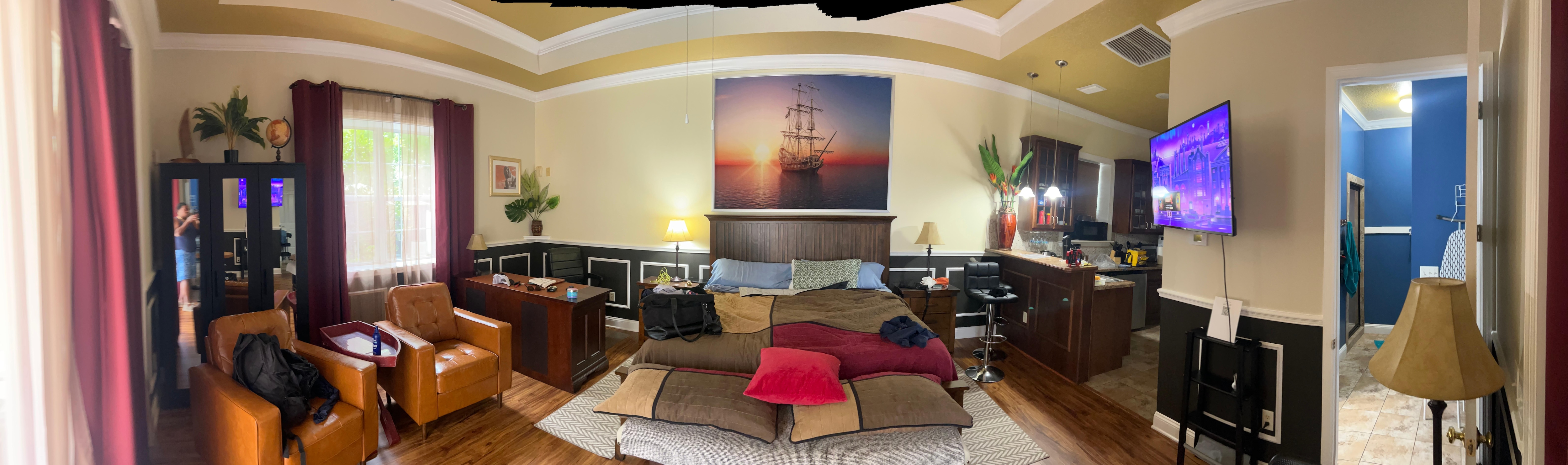Well kept property, clean, quiet, spacious. Room is big with high vaulted ceiling. Kitchenette had everything along with washer and dryer. Nice size bathroom. I would highly recommend this place for adults. Close to downtown, old district St. Augustine, shops, restaurants and night life. Sergey is a wonderful, professional host. He responded in a timely manner.