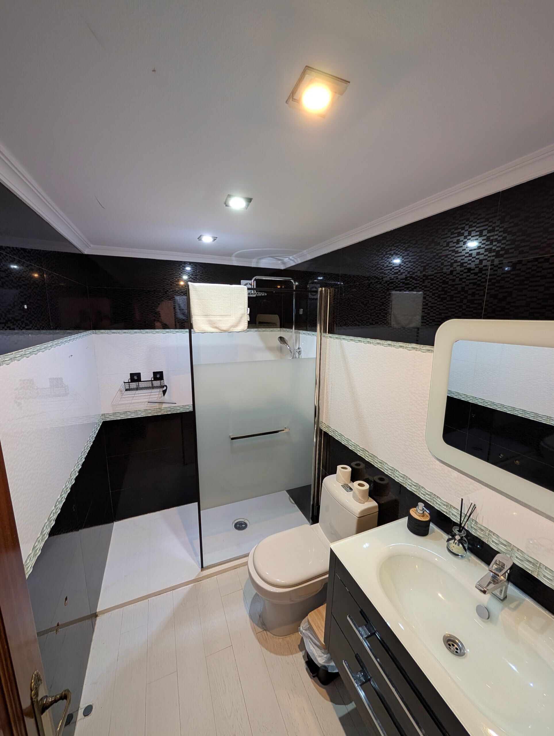 El apartamento decorado de forma moderna y funcional dispone de un dormitorio con una cómoda cama de matrimonio de dos metros y un amplio armario de tres puertas. El baño, equipado con un moderno plato de ducha, inodoro y lavabo, garantiza su comodidad.