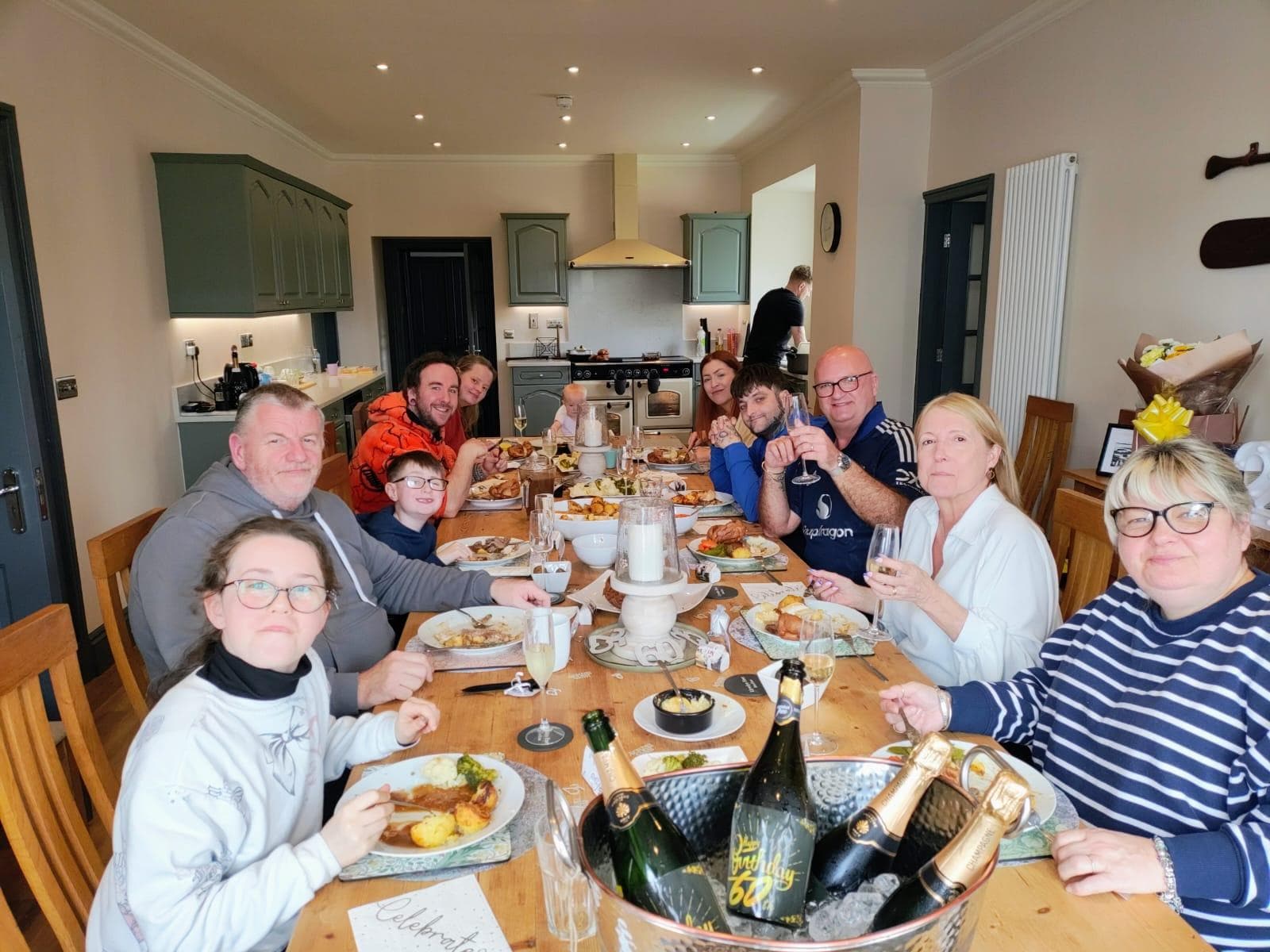 Just around the corner, you'll find the heart of the home: a large open-plan kitchen diner. This space is a chef's paradise, equipped with all the modern amenities you need to whip up anything from a quick breakfast to a gourmet feast. The long dining table invites everyone to sit together and enjoy meals, games, or late-night chats. And for the practical amongst you, there's a very handy utility room just off the kitchen to keep things running smoothly.