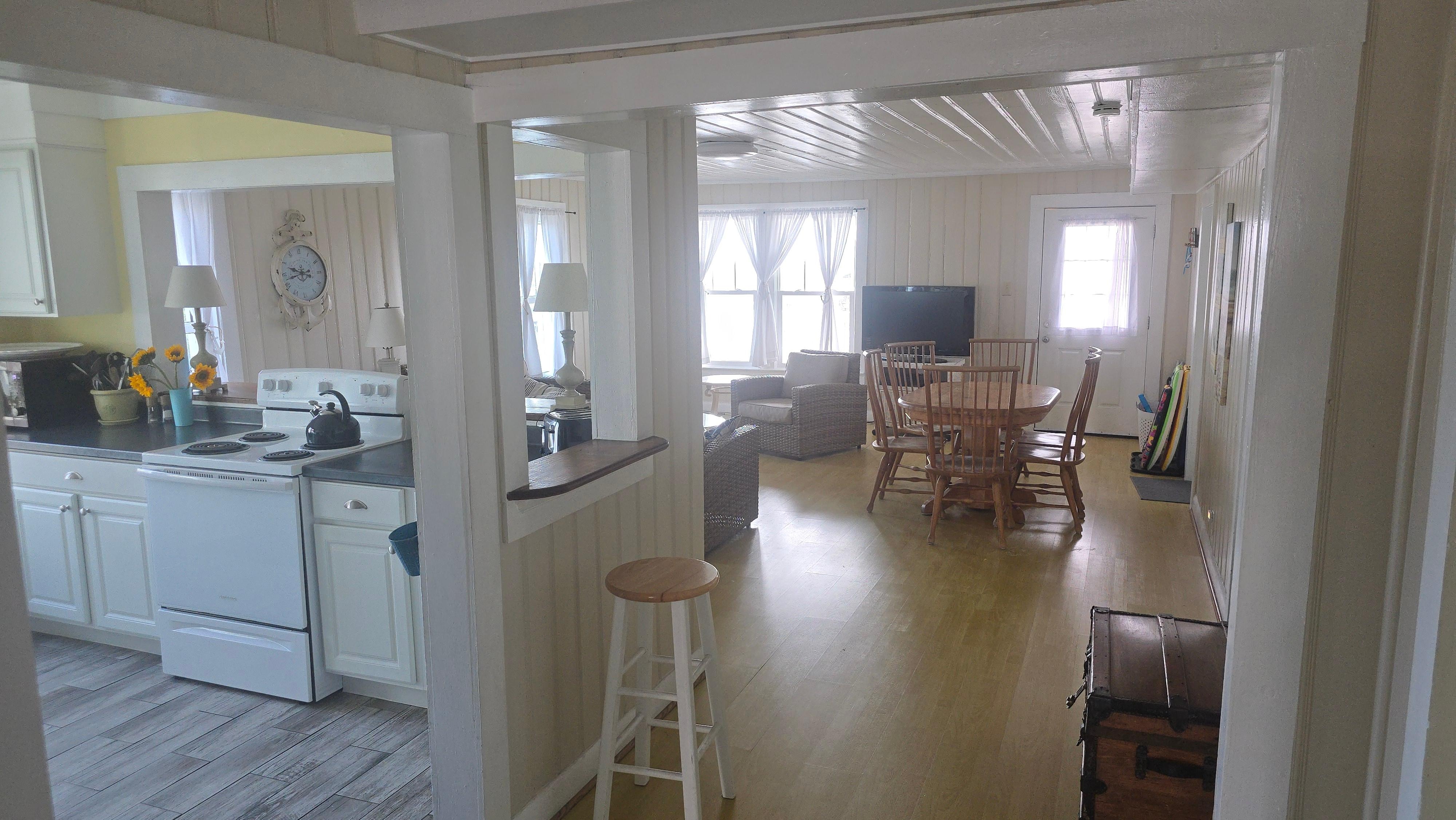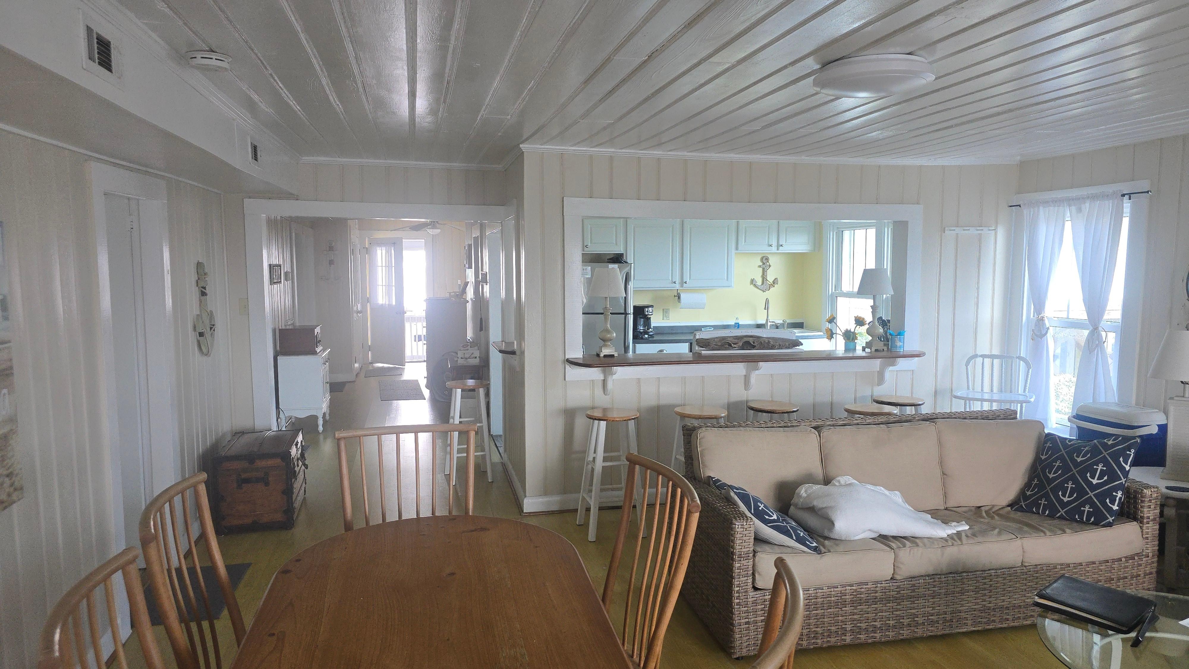 REGRESE A TIEMPO! Maravillosa casa de playa histórica auténtica! Este alojamiento en el segundo piso está completamente amueblado y provisto de todo lo que necesita para una estancia relajante ... ollas, sartenes, platos, etc. Enorme cubierta trasera ofrece espectaculares vistas desde el muelle hasta el muelle!