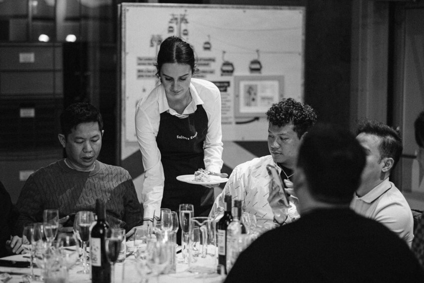 Enjoy a delicious three-course dinner, accompanied by half a bottle of wine per person, while enjoying music from a live musician. After dinner, hit the dance floor and enjoy the lively atmosphere before boarding the cable car.