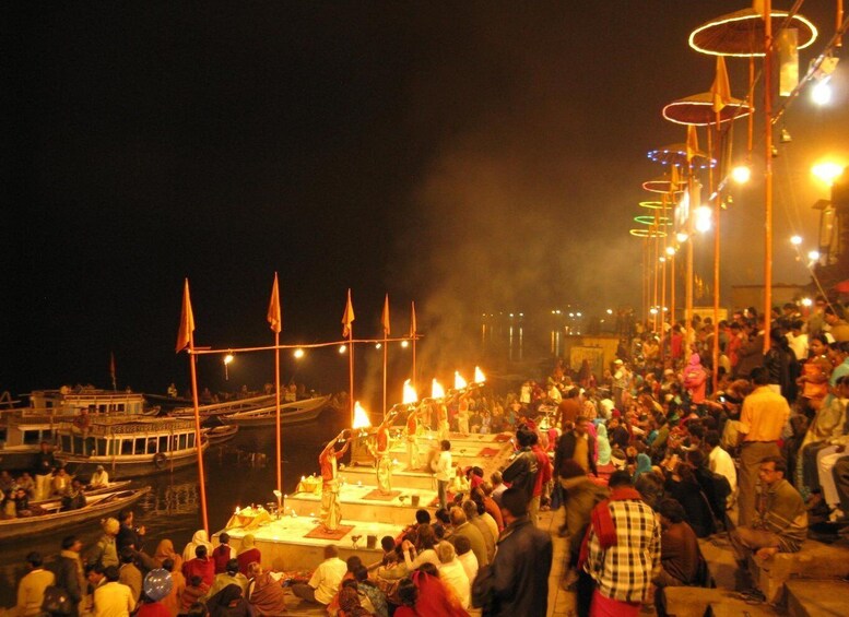 05:00 PM: Return to Varanasi and proceed to Dashashwamedh Ghat to witness the famous Ganga Aarti. The Ganga Aarti is a mesmerizing ritual that takes place every evening, offering prayers to the sacred river Ganges.