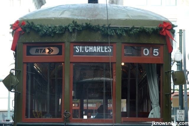 Street cars are fun to ride, and something about them being decorated with a wreath enhances the ride. It is a great way to see the beautiful homes, ornately decorated along St. Charles Street.