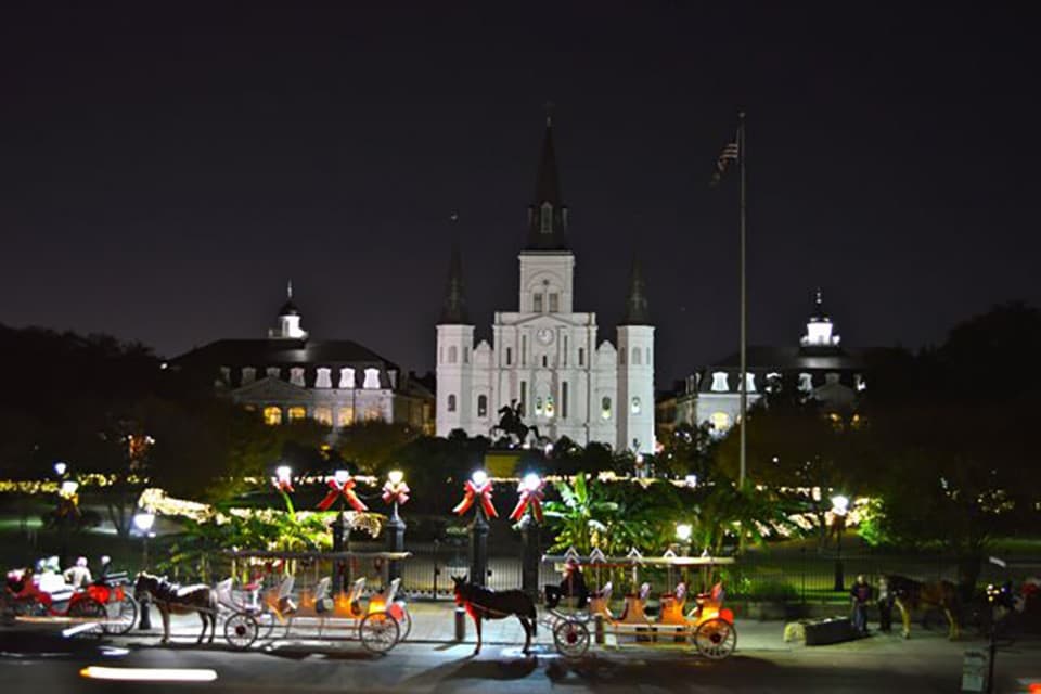 You can be guaranteed to find great energy any time of year in Jackson Square. Add some beautiful Christmas decorations around the Pontalba buildings surrounding St. Louis Cathedral as well as caroling, and it is a place you could find yourself spending a lot of time.