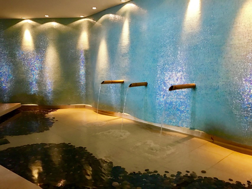 The “pediluvio” pebbled walkway maze highlighted my experience by massaging my feet with soft pebbles and warm water jets. The cherry on the top of this hydrotherapy circuit is a dip in the “pool of sensations,” filled with bubbles, floor geysers, water cascades, and the oh-so-magical neck jets.