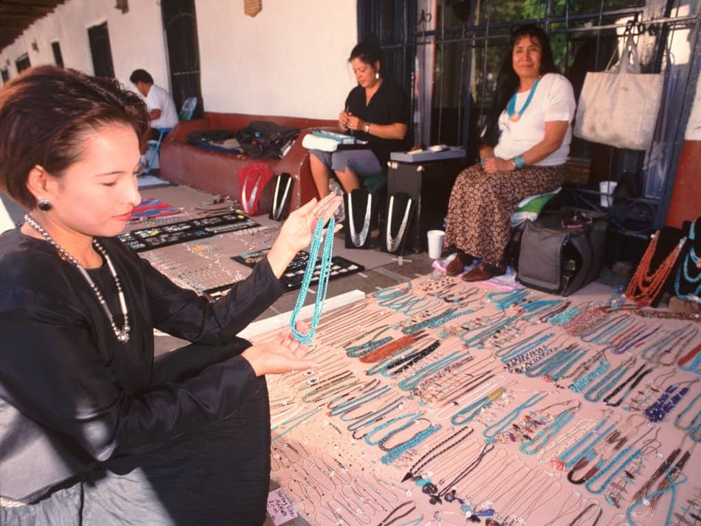 Native artists sell handcrafted jewelry on the plaza in Old Town. – Credit: www.visitalbuquerque.org