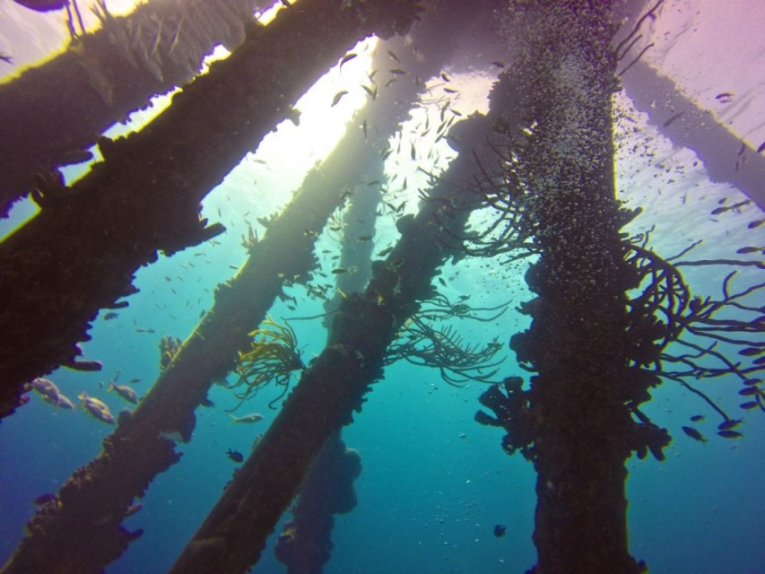 The Salt Pier is still an active pier owned by the Cargill Salt Company, so you can only dive there when there’s not a ship docked.