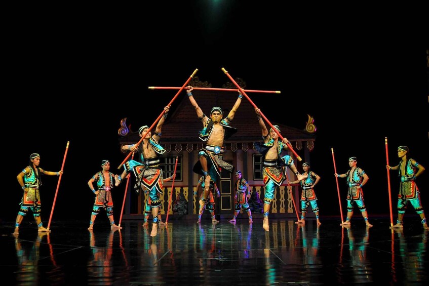 Viaje para ver Sumatra, Java, Kalimantan, Bali y Papua. Maravíllate con las danzas y disfraces tradicionales del archipiélago, junto con los efectos especiales y actos acrobáticos de la función de 60 minutos, que es apta para todas las edades. Pase la noche con su familia y ámese descubriendo las culturas de Indonesia.