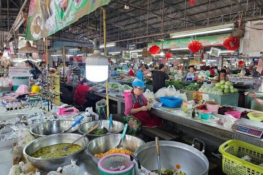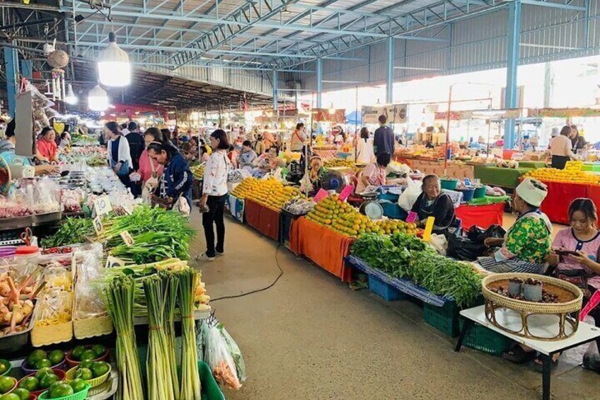 On the way back to Chiang Mai, we make a short stop at the Chedi Mae Krua Market, a lively local market where you can experience everyday Thai life up close. Strolling through the colorful stalls, you’ll find fresh fruit and typical Thai snacks, a perfect opportunity to browse, soak up the atmosphere, and maybe even sample a few treats. It’s the perfect opportunity to soak in the bustling atmosphere, mingle with local vendors, and perhaps sample a tasty treat or two. Whether you’re tempted by exotic fruits you’ve never seen before or intrigued by the sizzling street food, this visit offers a delightful glimpse into the authentic flavors and rhythms of daily life in Northern Thailand.