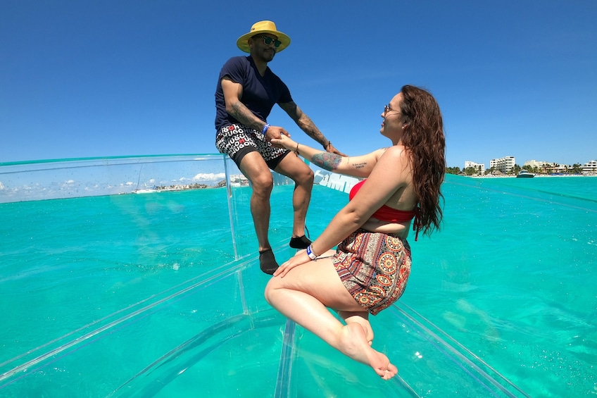 Clear boat from Cancun : Glassbottom boat ride to the Caribbean Sea