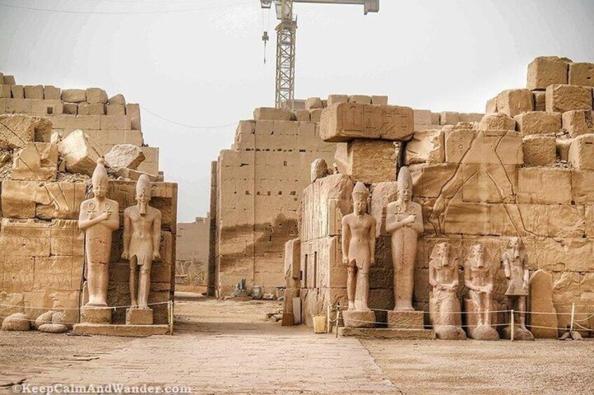 - 12:300 P.M4Visiting Colossi of Memnon Colossi of Memnon are Two massive stone statues of king Amenhotep III are the only remains of a complete mortuary temple.The statues are made from blocks of quartzite sandstone which exist in Cairo then moved 700 KM to Luxor, The two statues Know as the Colossi of Memnon, Rising about 18 M from the plain, They are the remains of what once the largest complex on the west bank, Built by Amenhotep the Third. At around noon you will have lunch in a Local restaurant in Luxor, Then Visit The Temple of Karnak -the largest ancient religious site known anywhere in the world :