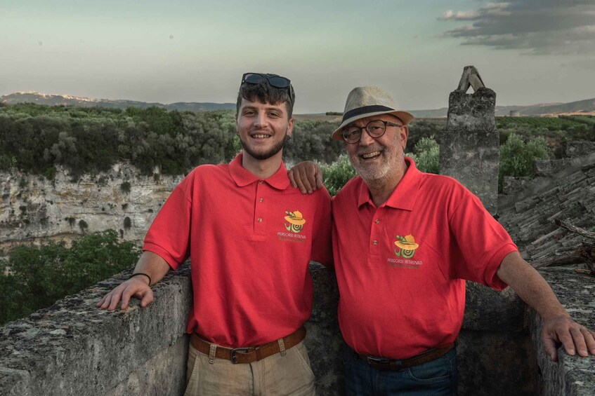 All of this will take place inside a workshop, at the end of which we will share this meal, just as olive harvesters still do during their breaks today. The cialledda will be accompanied by Primitivo wine and a bundle containing Lucanian Slow Food Presidium products: Caciocavallo Podolico, Oven-Baked Olives from Ferrandina, and the Pezzente salami from the Montagna Materana. Furthermore, we will be delighted by the sounds of traditional instruments and songs from the Matera tradition.